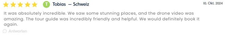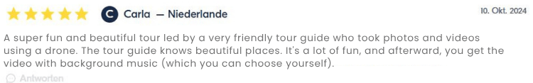 You'll receive professional drone footage that captures your adventure from a bird's eye view. Using the latest DJI drone technology, we create impressive aerial shots of you and the breathtaking landscapes - a perfect way to capture your holiday memories in cinematic quality.